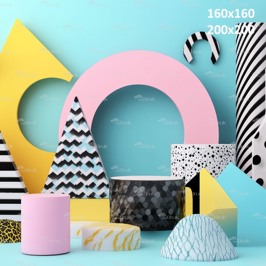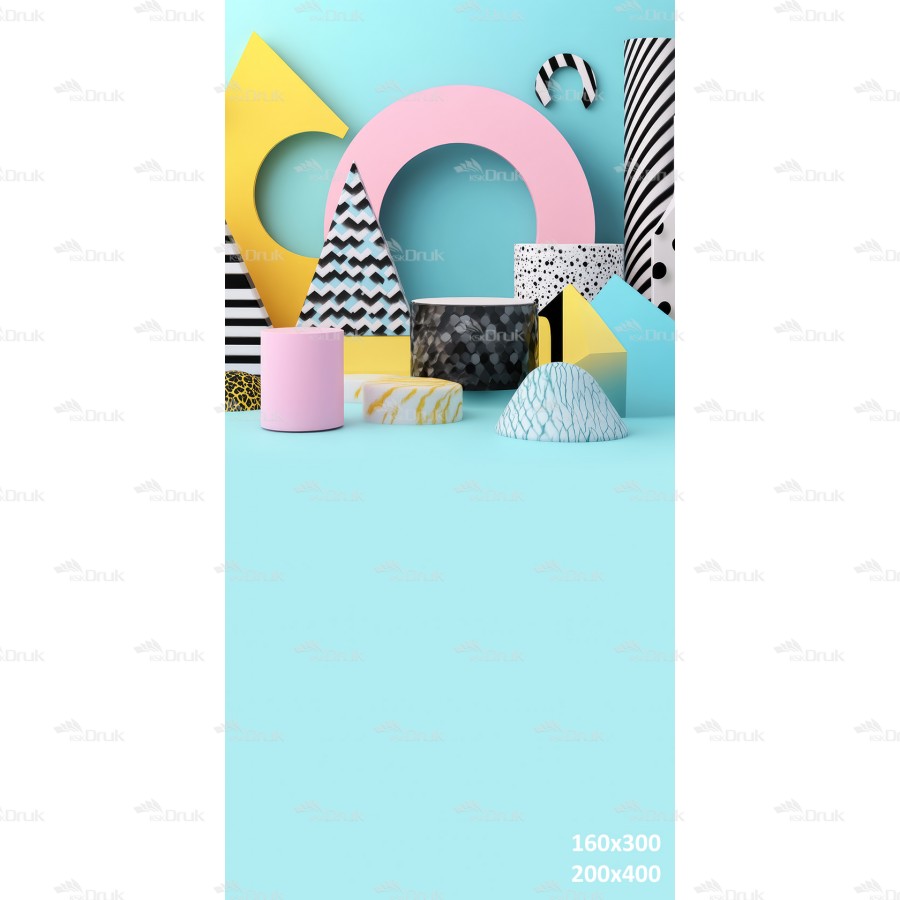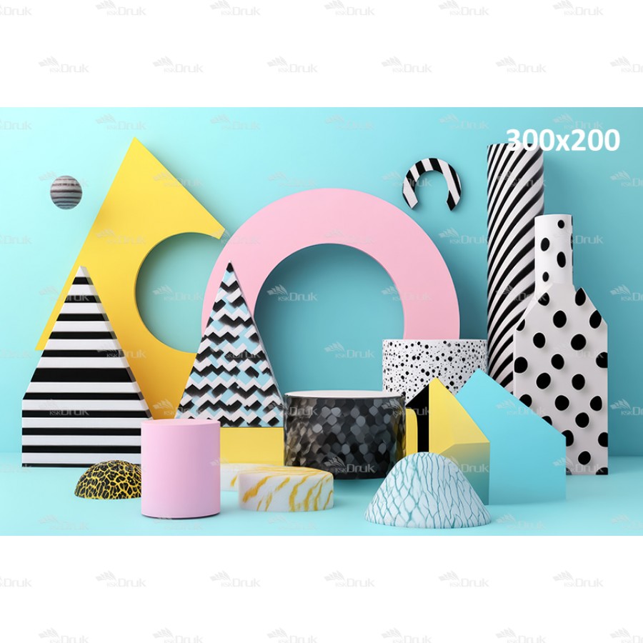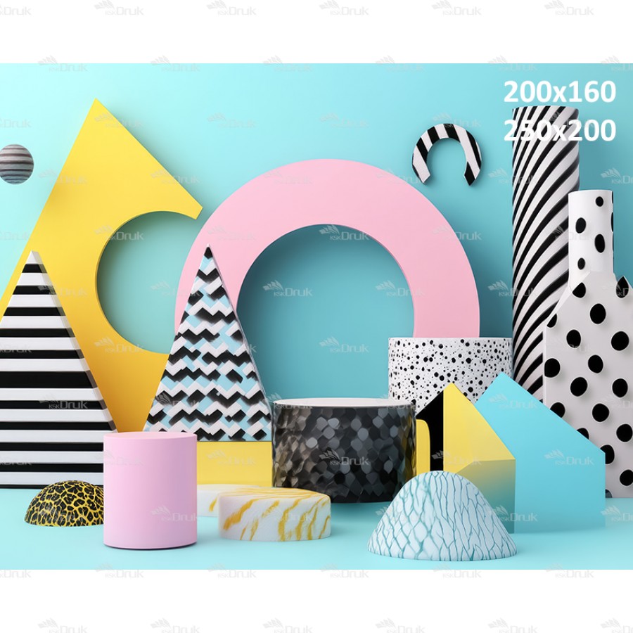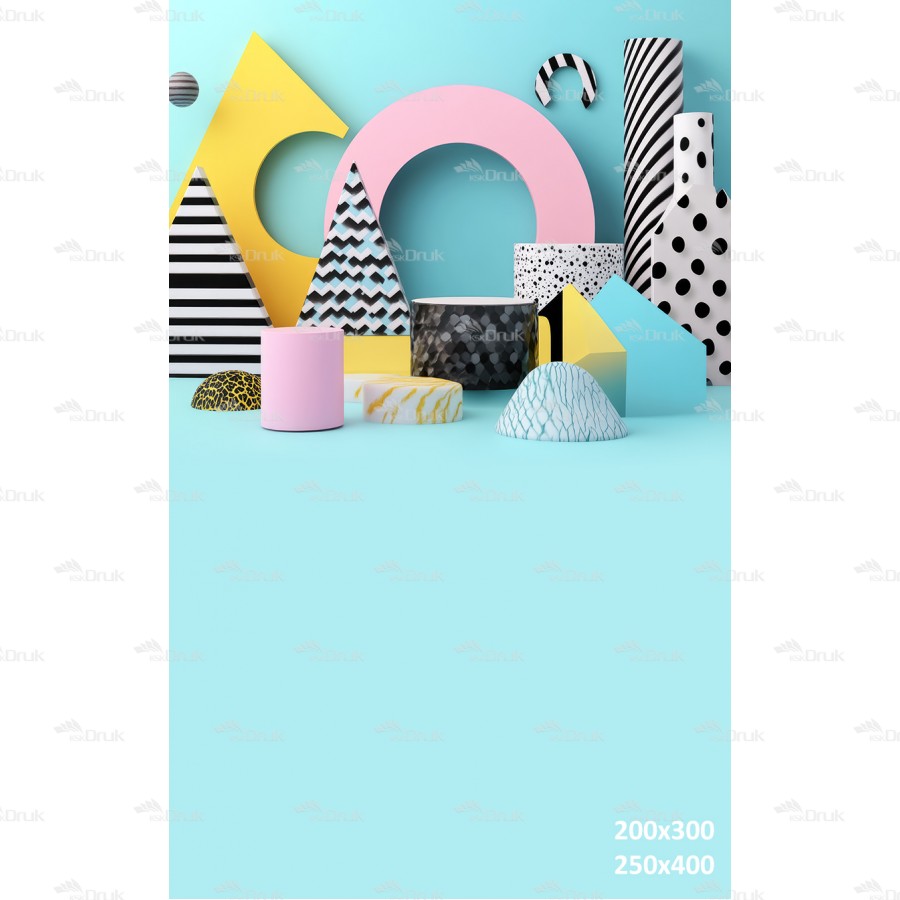 Tagi: Tło fotograficzne 3406, tło urodzinowe, abstrakcja, kolorowe, geometryczne bryły, różne desenie, koła, walce, stożki, trójkąty, turkusowy, biały, czarny, żółty, różowy