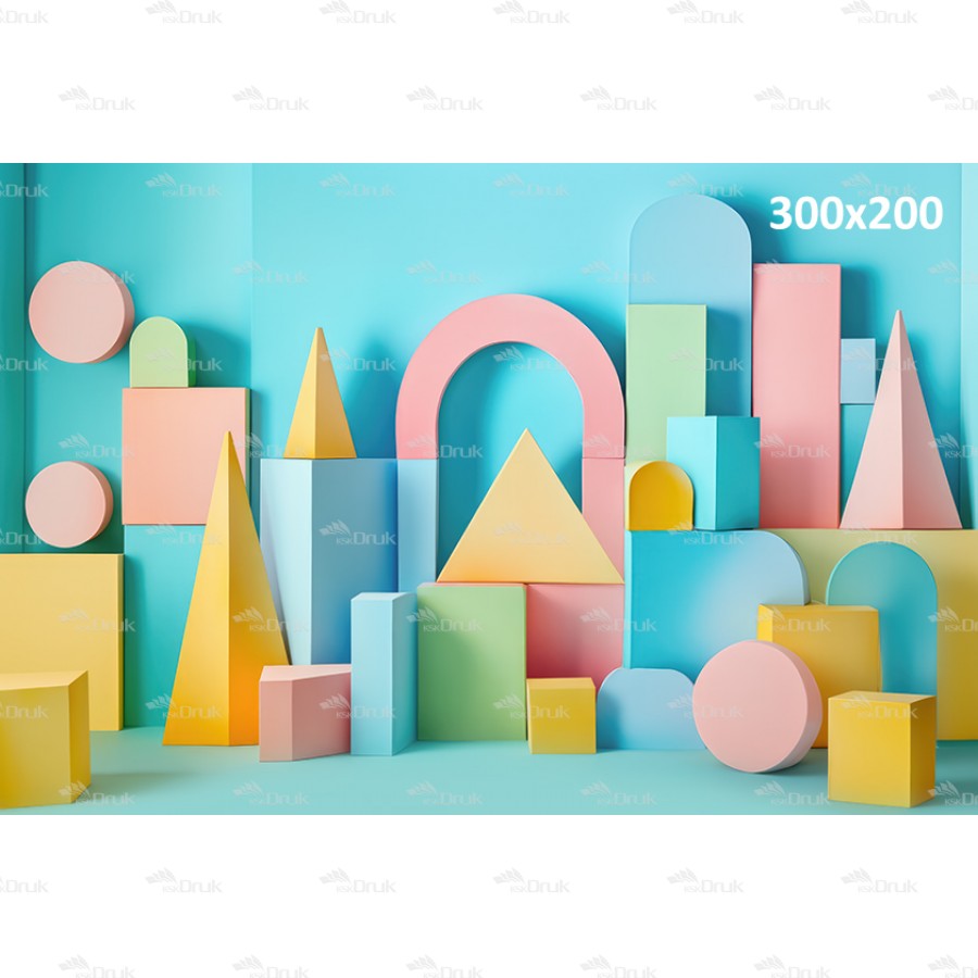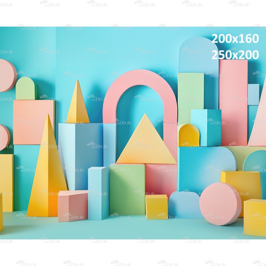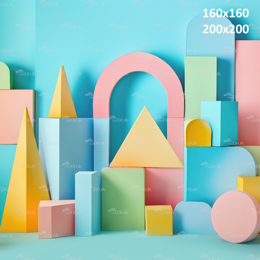 Tagi: Tło fotograficzne 3407, tło urodzinowe, abstrakcja, kolorowe, geometryczne bryły, ostrosłupy, walce, drewniane klocki, pastelowe kolory, niebieski, żółty, różowy