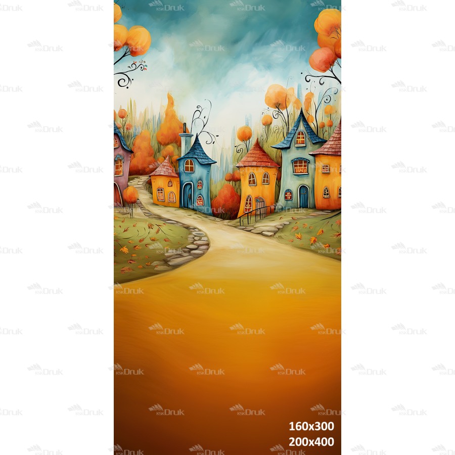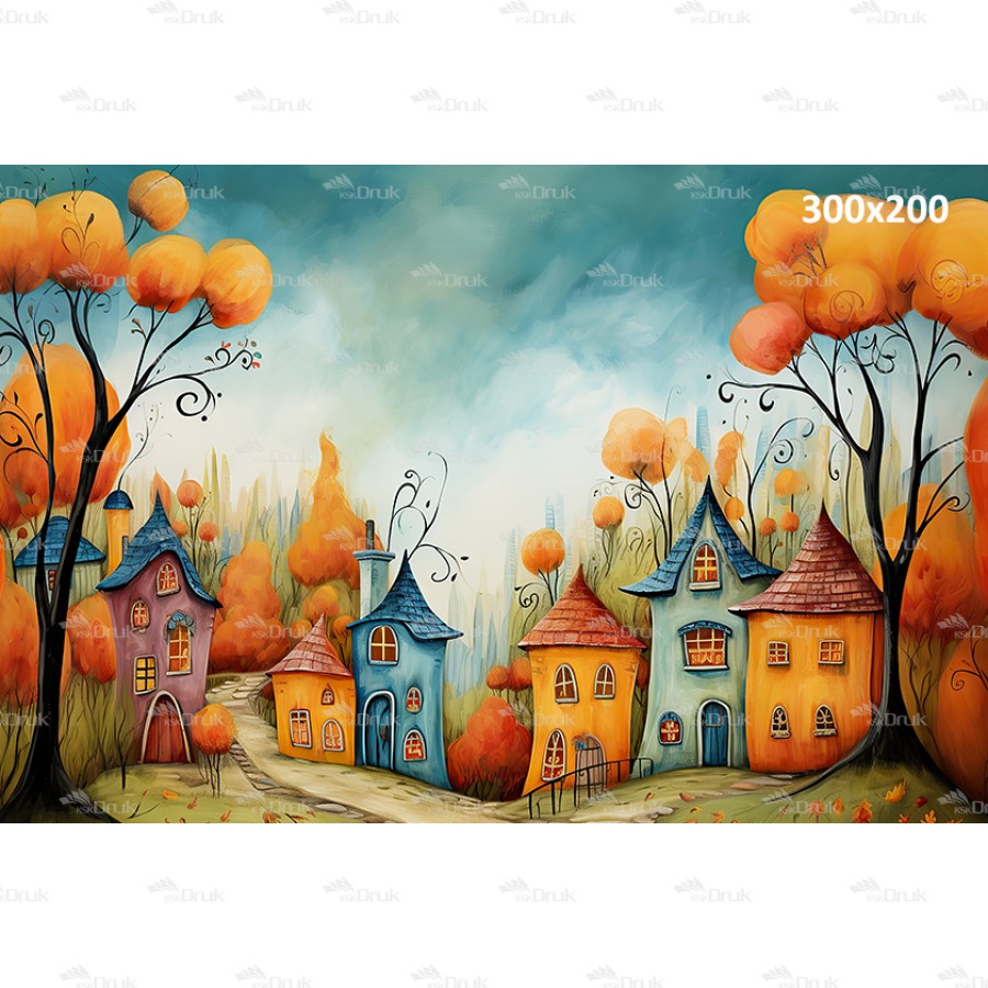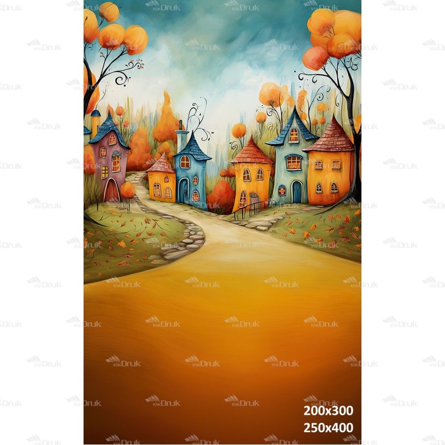 Tagi: Tło fotograficzne J_87 jesienne, rysowane, dla przedszkolaka, tło jesienne dla dzieci, domki, kolorowe domki, kolory jesieni, pastelowe