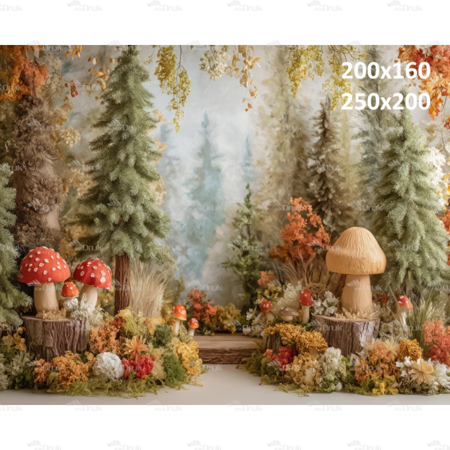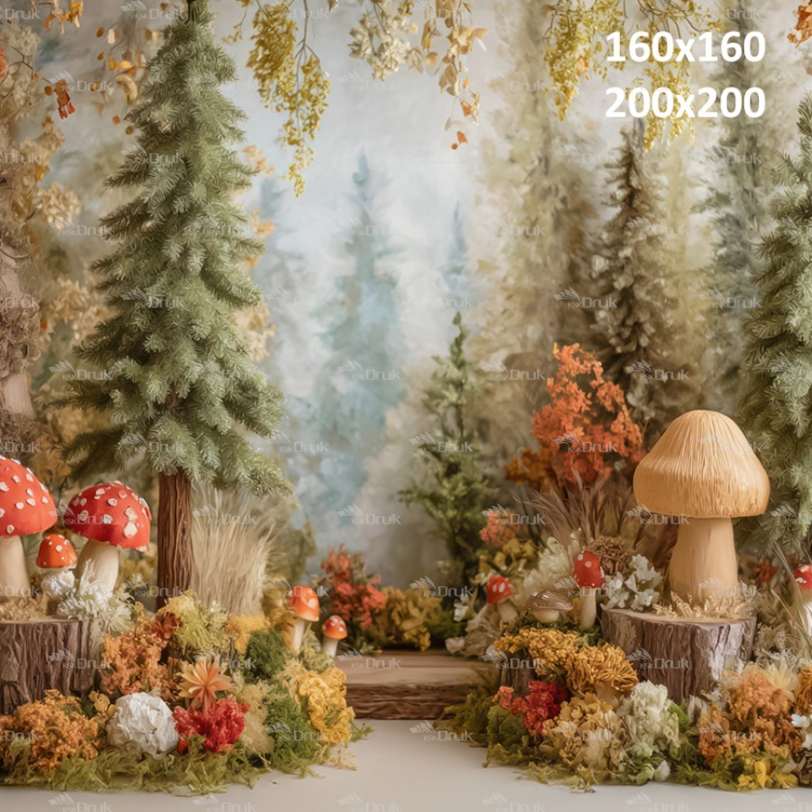 Tagi: J_238, tło leśne, pastelowe tło, czerwone muchomory, jasne tło do zdjęć, tło do sesji dziecięcej, tło jesienne, leśne dekoracje, grzyby, boho, KSK DRUK