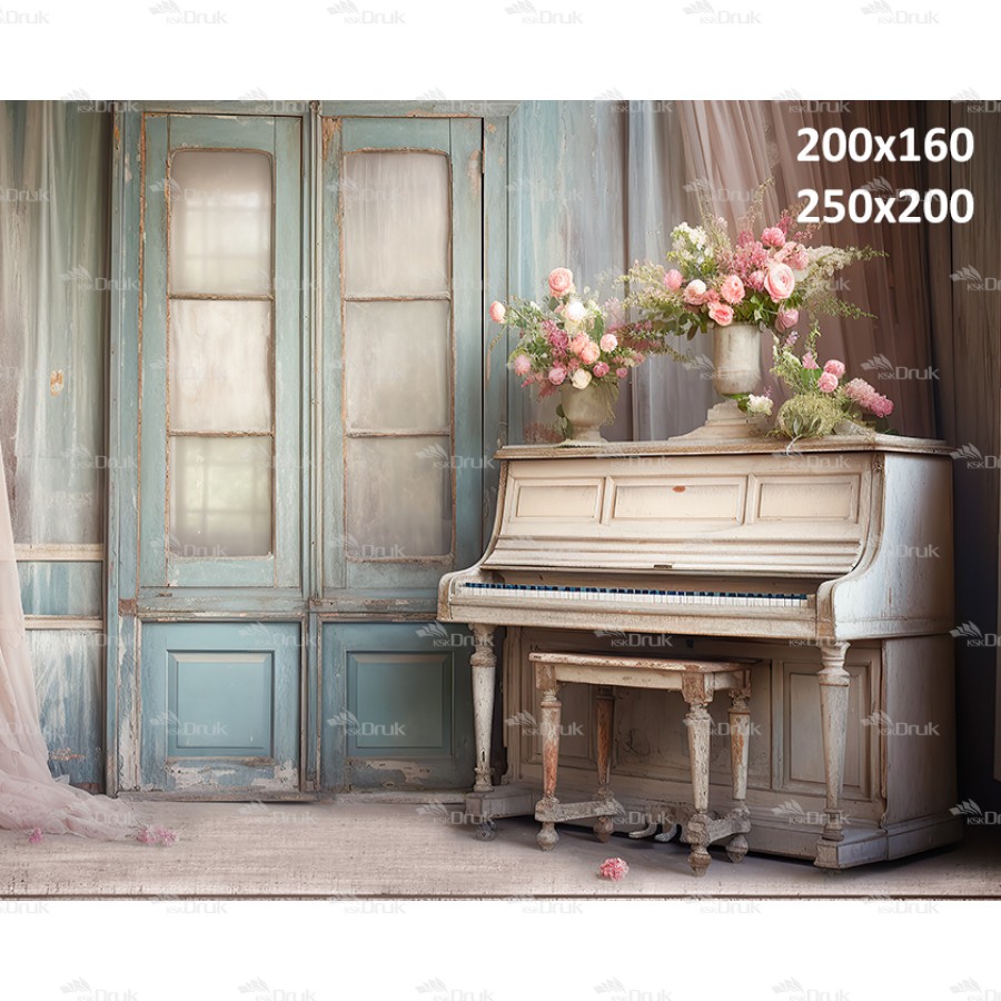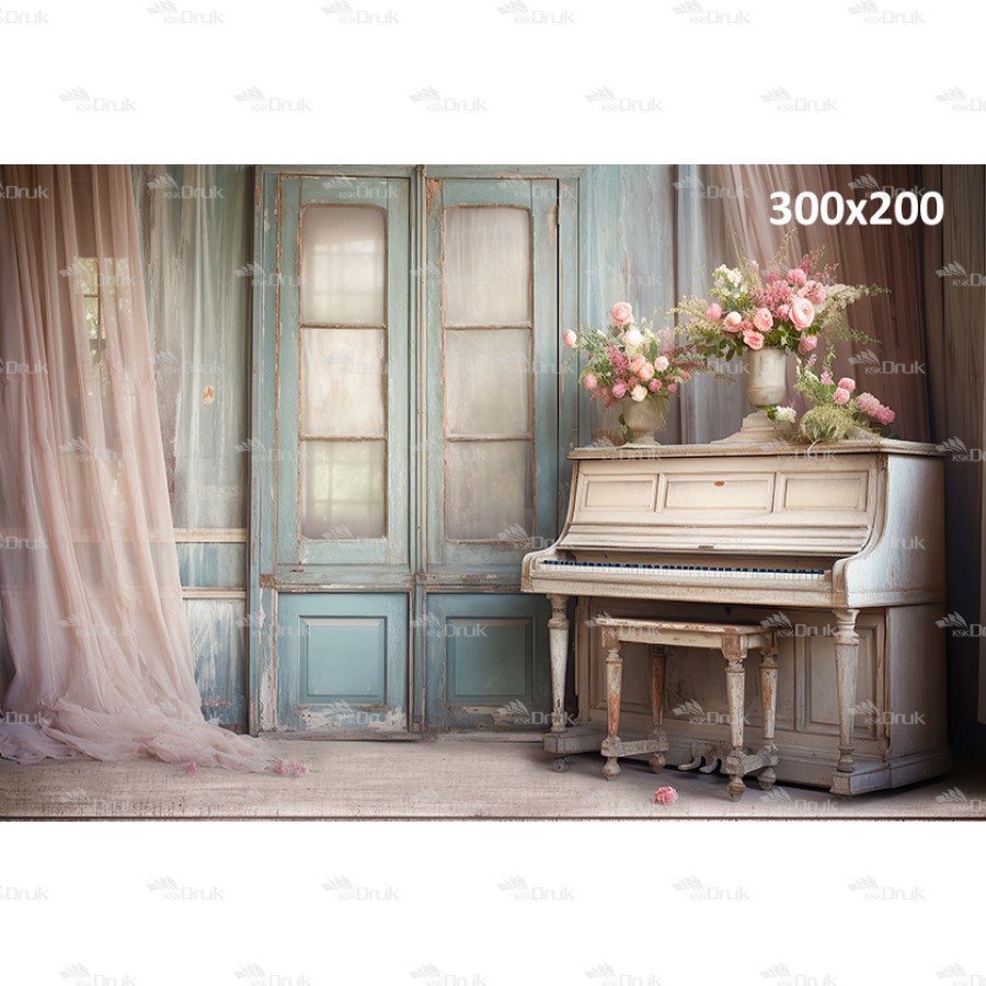 Tagi: Tło fotograficzne D_43 dzień babci, dzień dziadka, tiulowe zasłony, drzwi, pianino, shabby chic, wazony z kwiatami, kwiaty, kremowy, szary, zielony, miętowy, różowy, kolor, jasna drewniana podłoga, deski