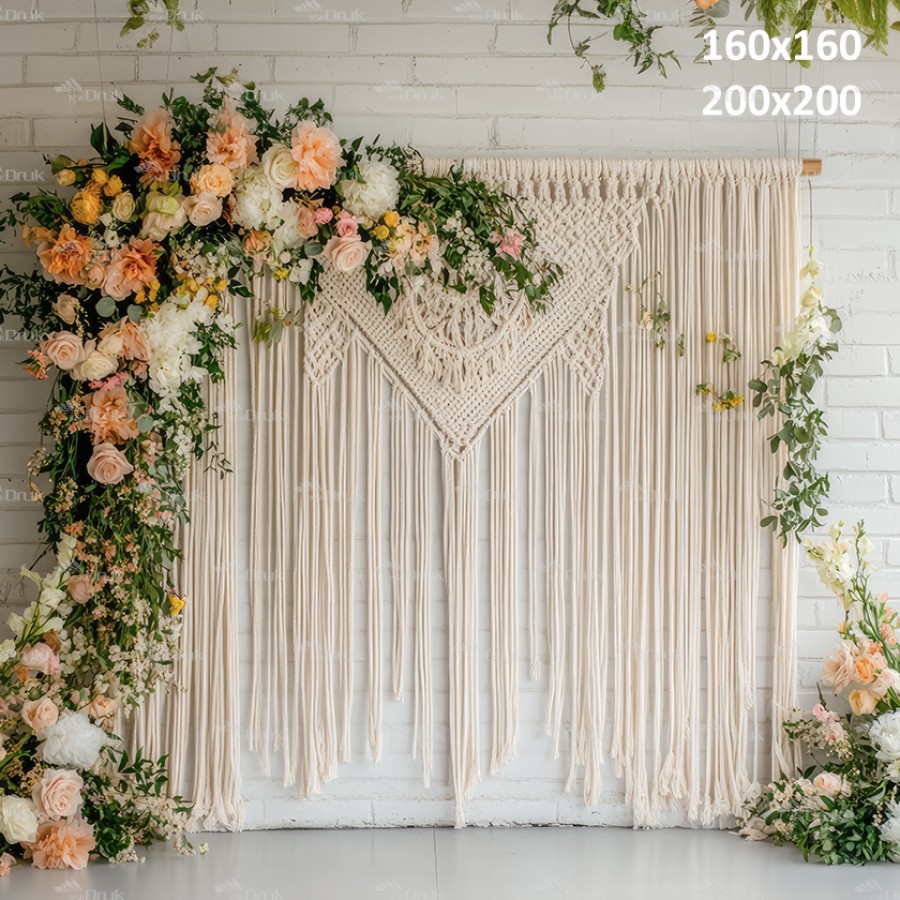 Tagi: Tło fotograficzne 3297, tło urodzinowe, dla dziewczynki, wiosna, kobiece, dzień mamy, dzień kobiet, boho, makrama, kwiatowa girlanda, kwiaty beżowy, różowy, kremowy