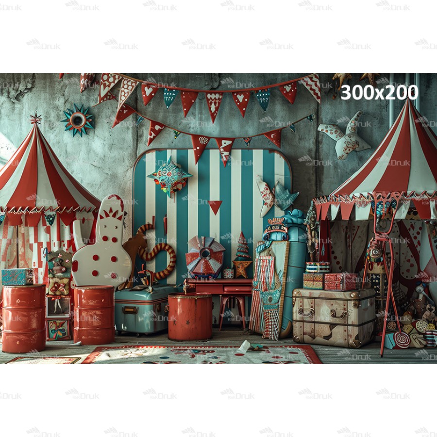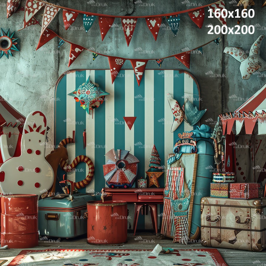 Tagi: Tło fotograficzne 2714, cyrk, sklep, ozdoby, betonowa ściana, dywanik, niebieskie ozdoby