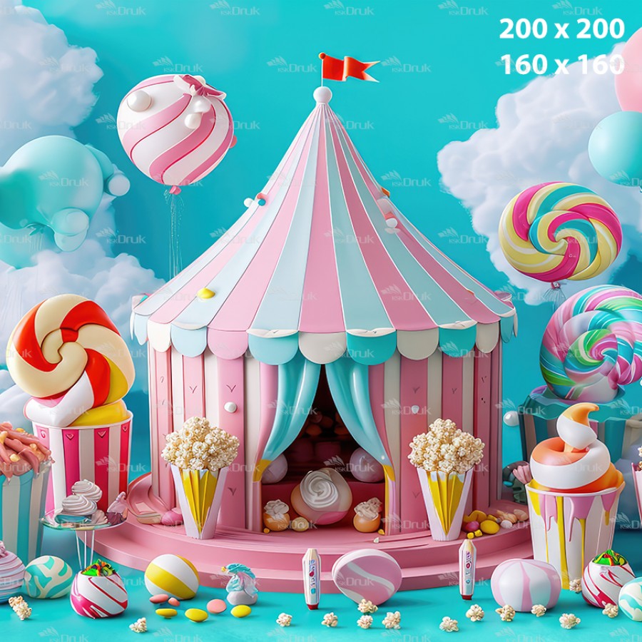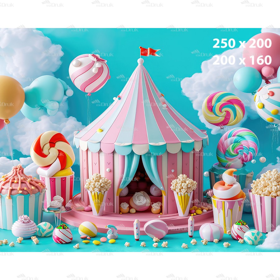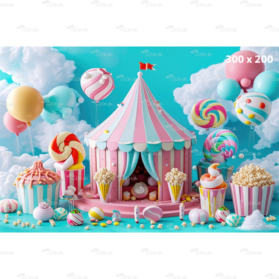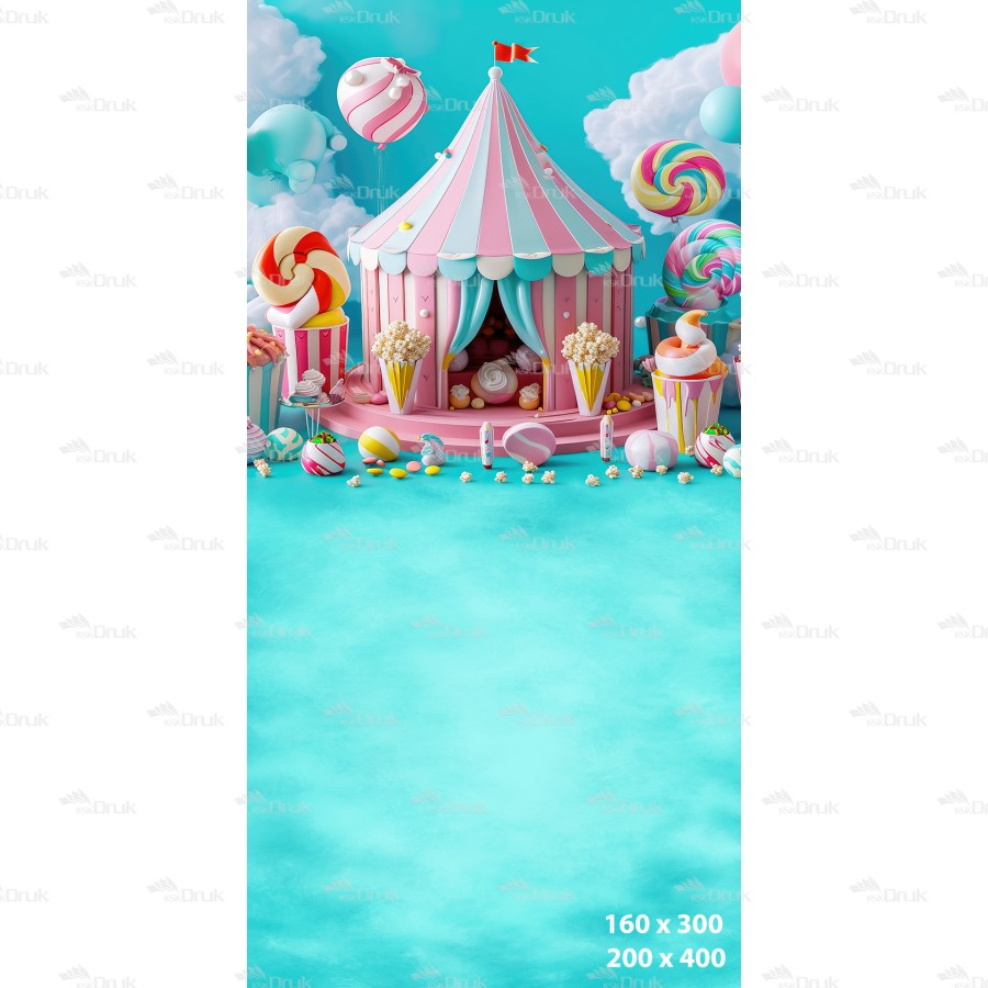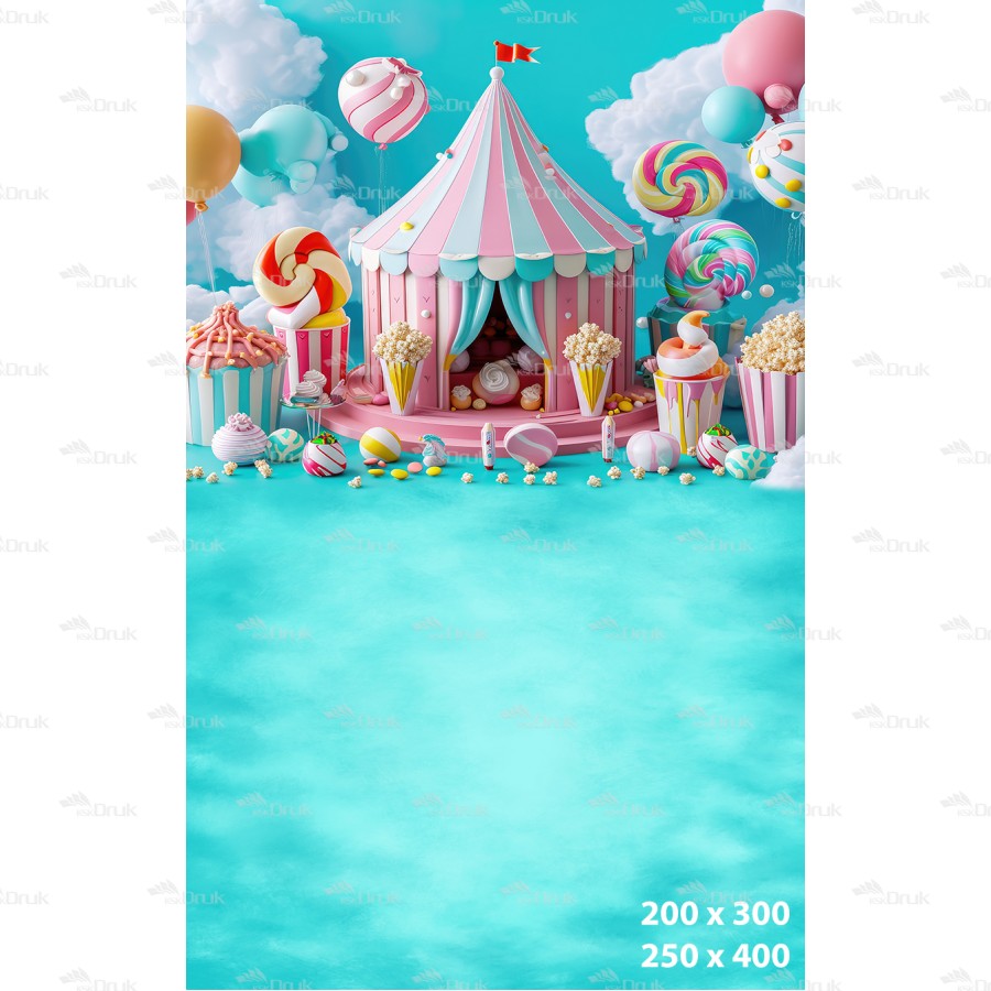 Tagi: Tło fotograficzne UB_391, cyrk, lizaki, chmury, balony, kinowe dekoracje, różowy namiot, niebieska ściana, niebieska podłoga