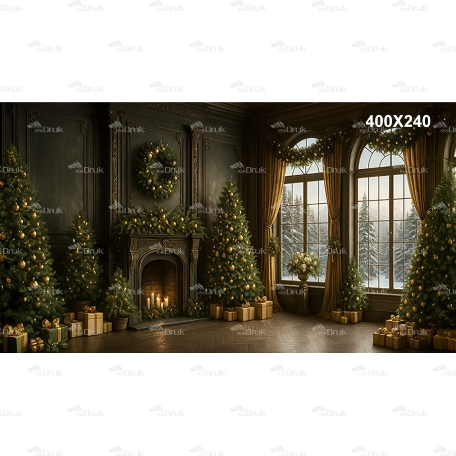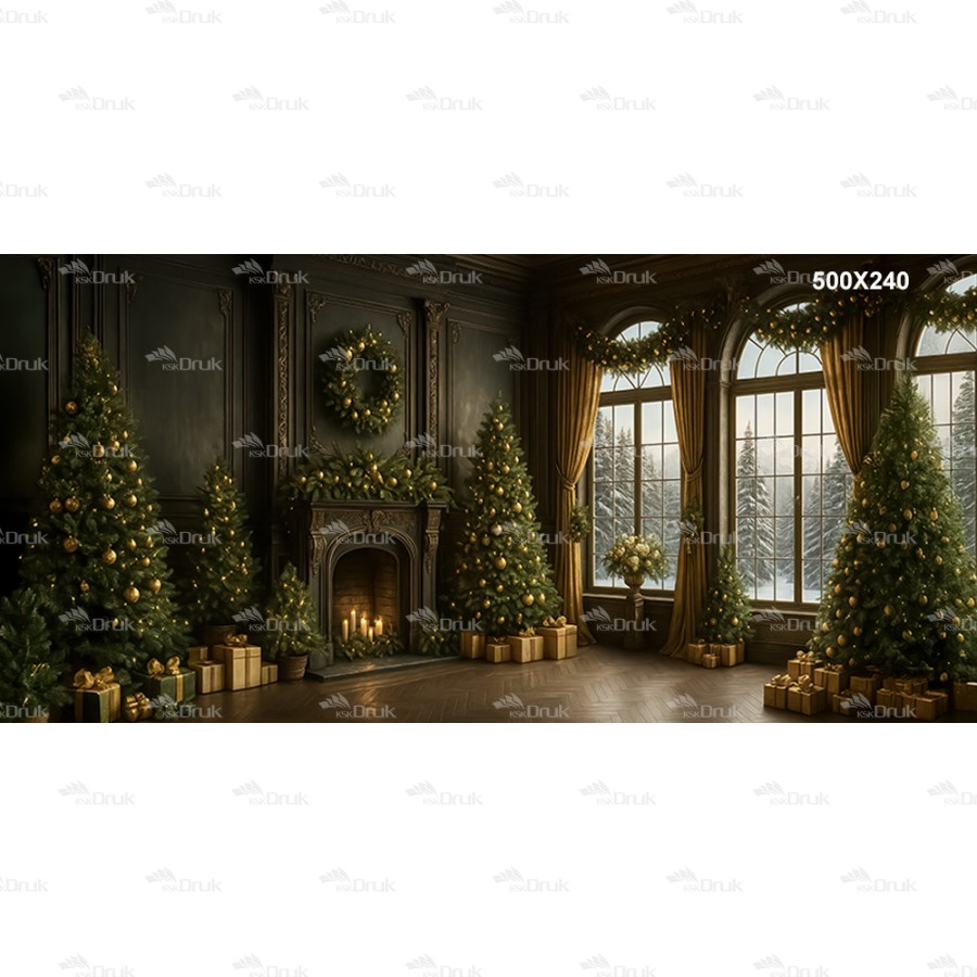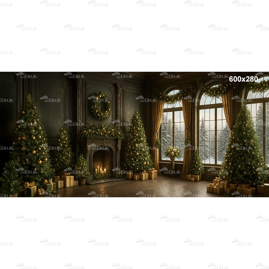 Tagi: XXL_46, tło świąteczne, luksusowy salon, kominek, złote prezenty, świąteczna elegancja, okna zimowe, bożonarodzeniowy klimat, choinki, tło do sesji