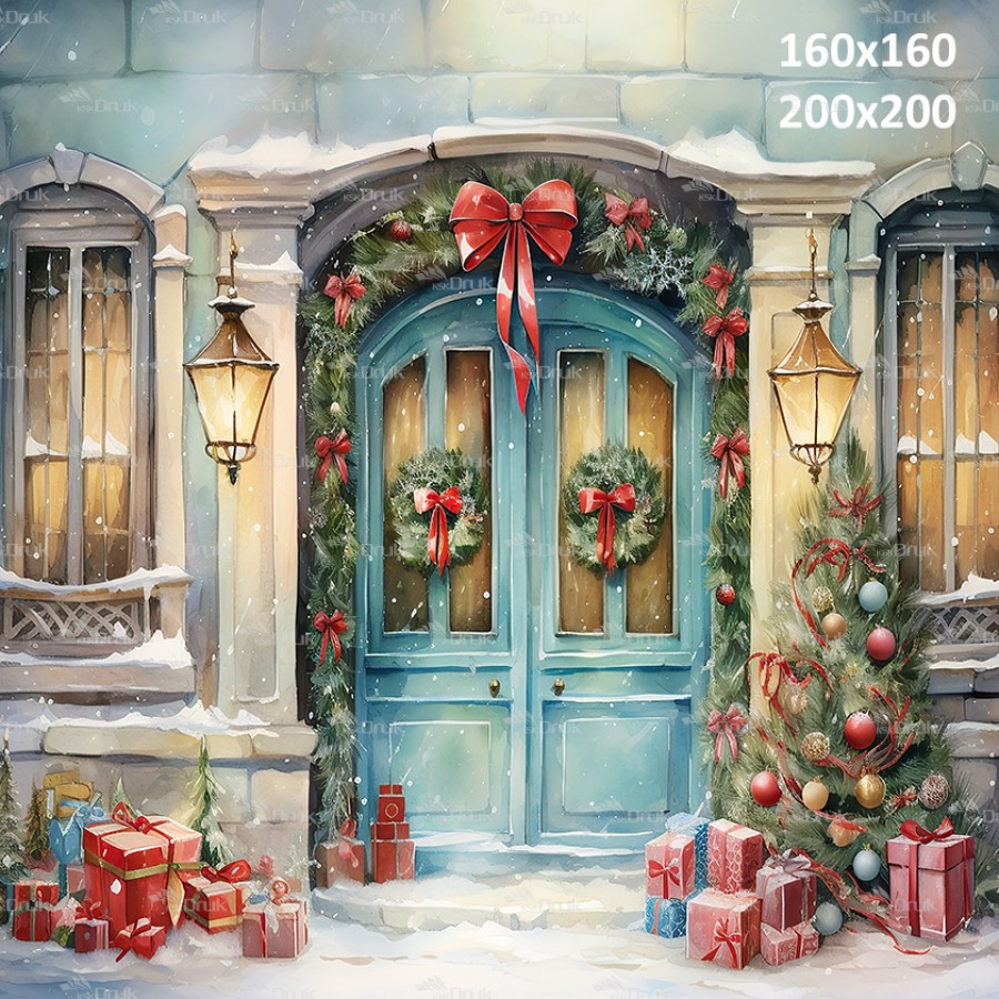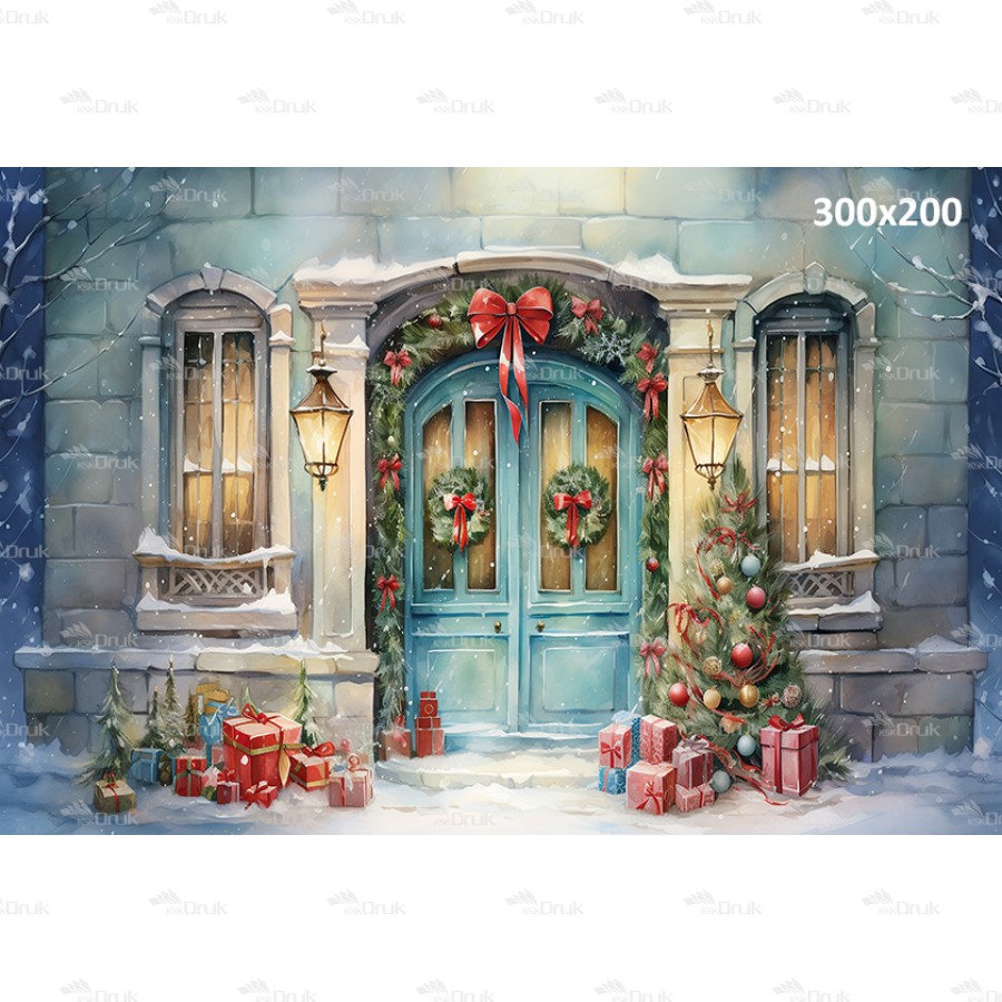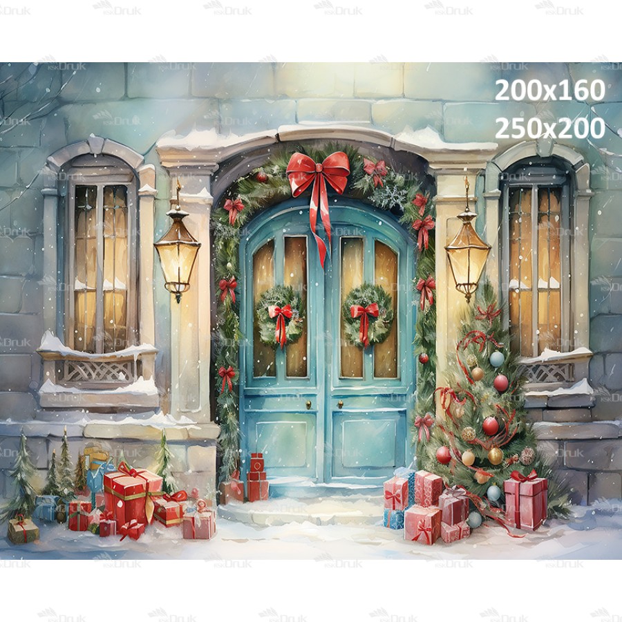 Tagi: Tło fotograficzne P51 boże narodzenie, akwarele, rysowane, dla dzieci, do przedszkola, sesja bożonarodzeniowa przedszkolna, drzwi, błękitne drzwi, zima, prezenty, wieńce