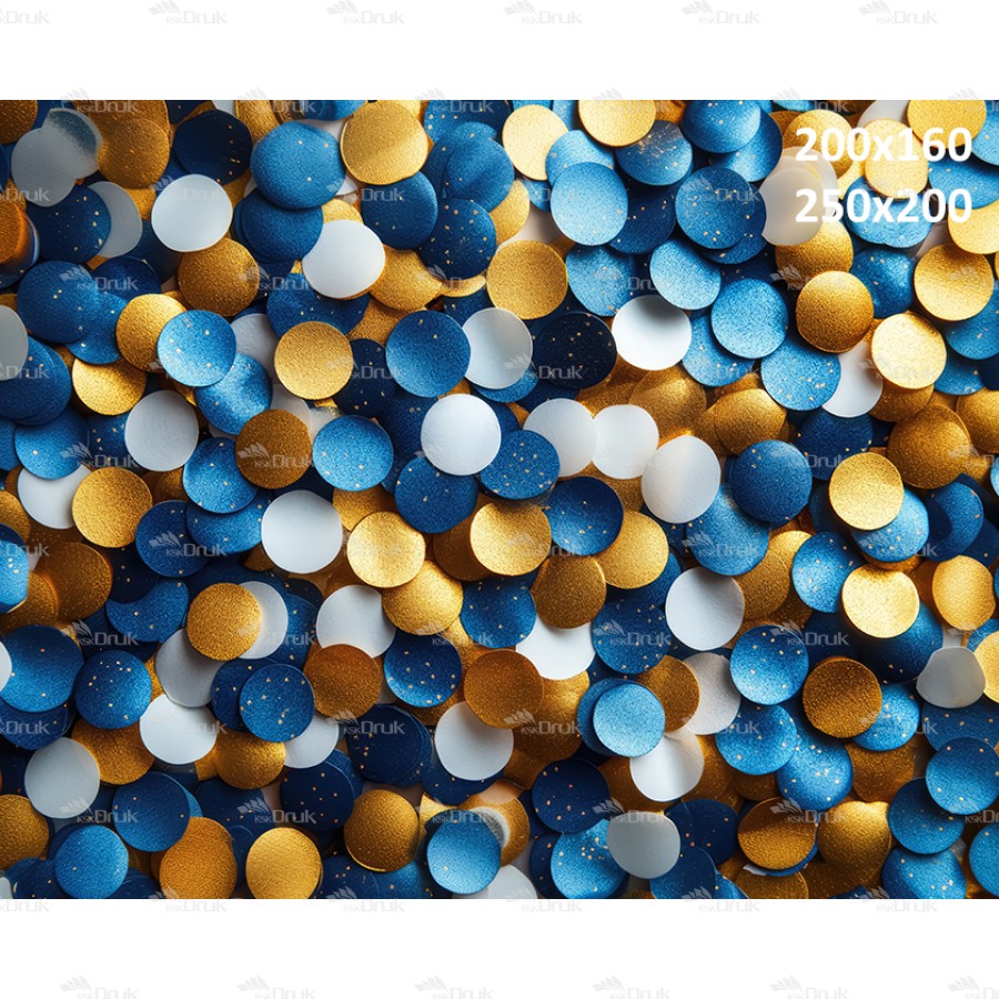 Tagi: Tło fotograficzne K_141, karnawał, sylwester, impreza, zabawa, urodziny, konfetti, kolorowe kółka, granatowy, szary, złoty