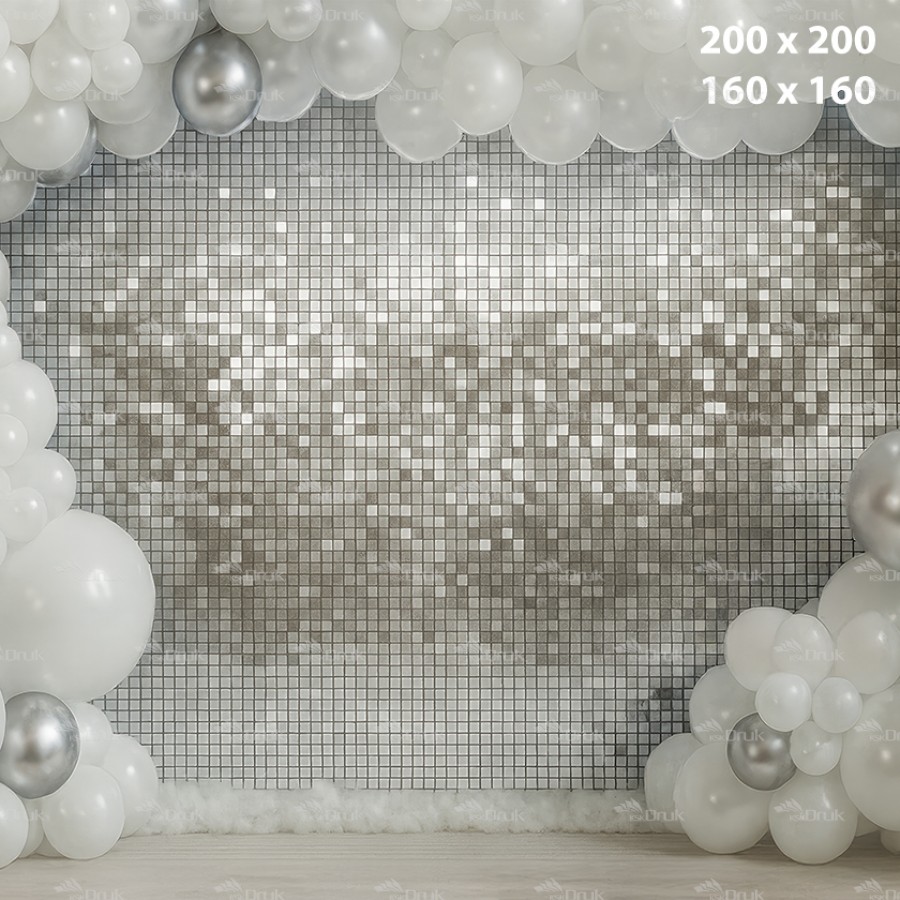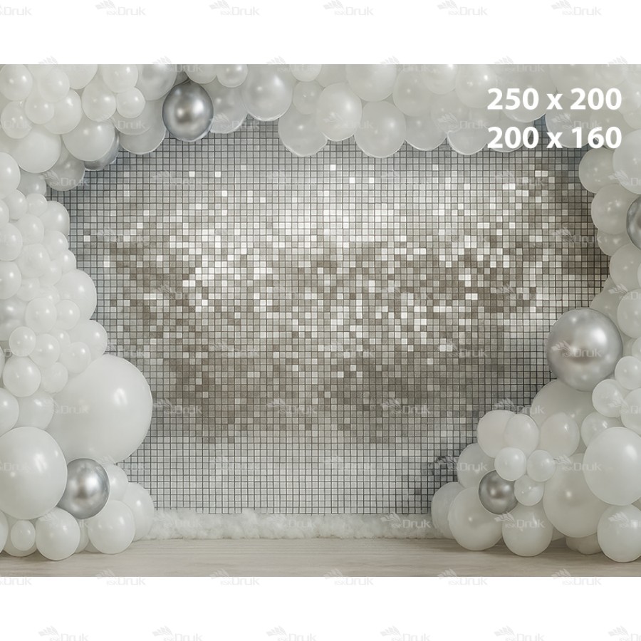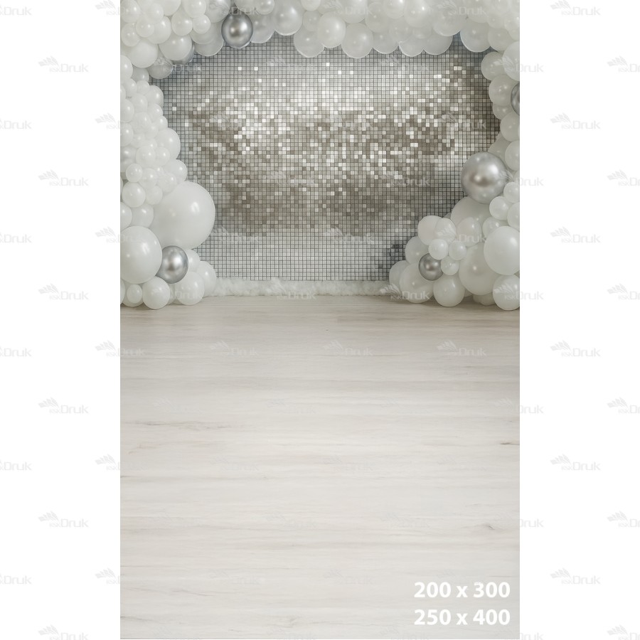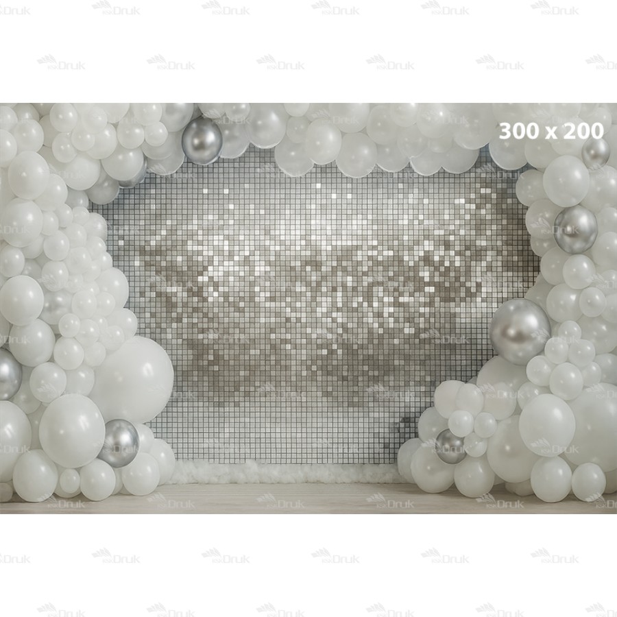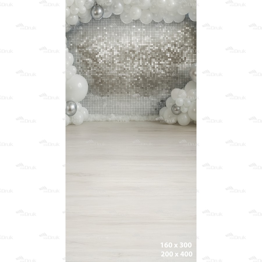 Tagi: tło karnawałowe; srebrne; cekiny; białe balony; srebrne balony; glamour; tło sylwestrowe; backdrop silver; ścianka weselna; tło eventowe; dekoracja sali; KSK DRUK; K_185