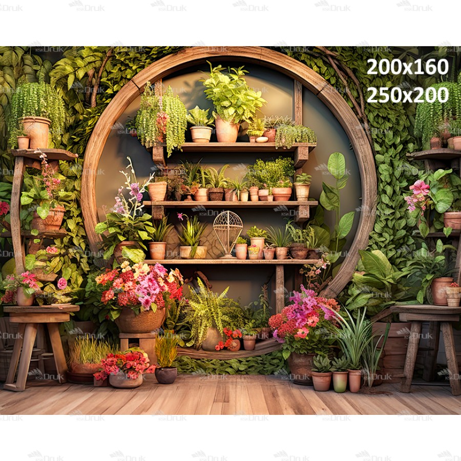 Tagi: Tło fotograficzne E261, wiosna, ściana cała w kwiatach, kwiaciarnia, zielony, różowy, czerwony, brązowy kolor, drewniana podłoga, deski